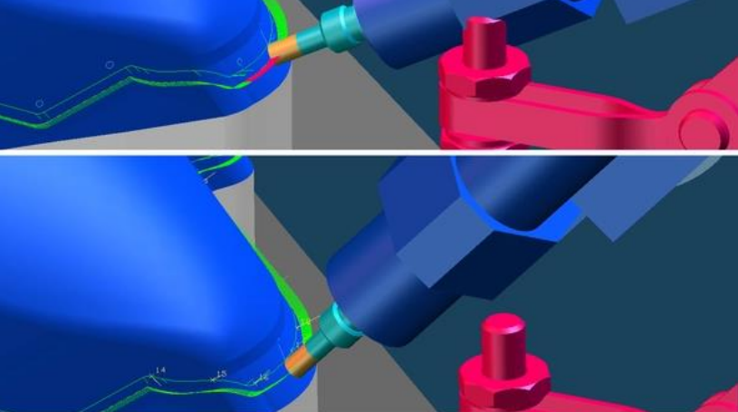 - Symulacja programów NC i automatyczne sprawdzanie kolizji głowic